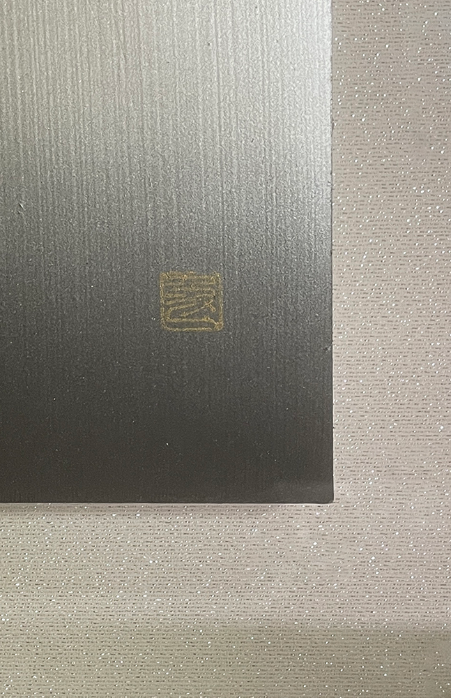 波の音やリズムは、母親の胎内で感じていた音と似ていることから自然と体内回帰をしたような感覚となり、安心感を得られると言われています。光り輝く箔と色彩が、鑑賞する人の心を映し出す鏡のように感じられる作品です。